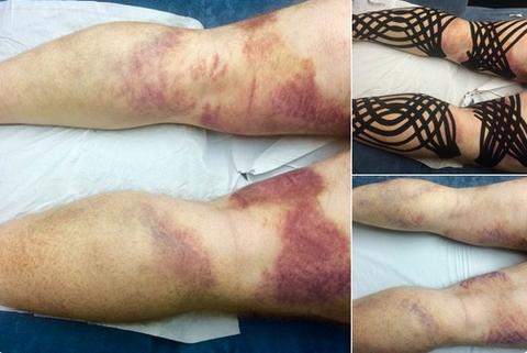 These photos were taken 24 hours apart by one of our SPORTTAPE PRO's - Rex Physiotherapy.. You can see how the tape has helped to clear the bruising quickly.